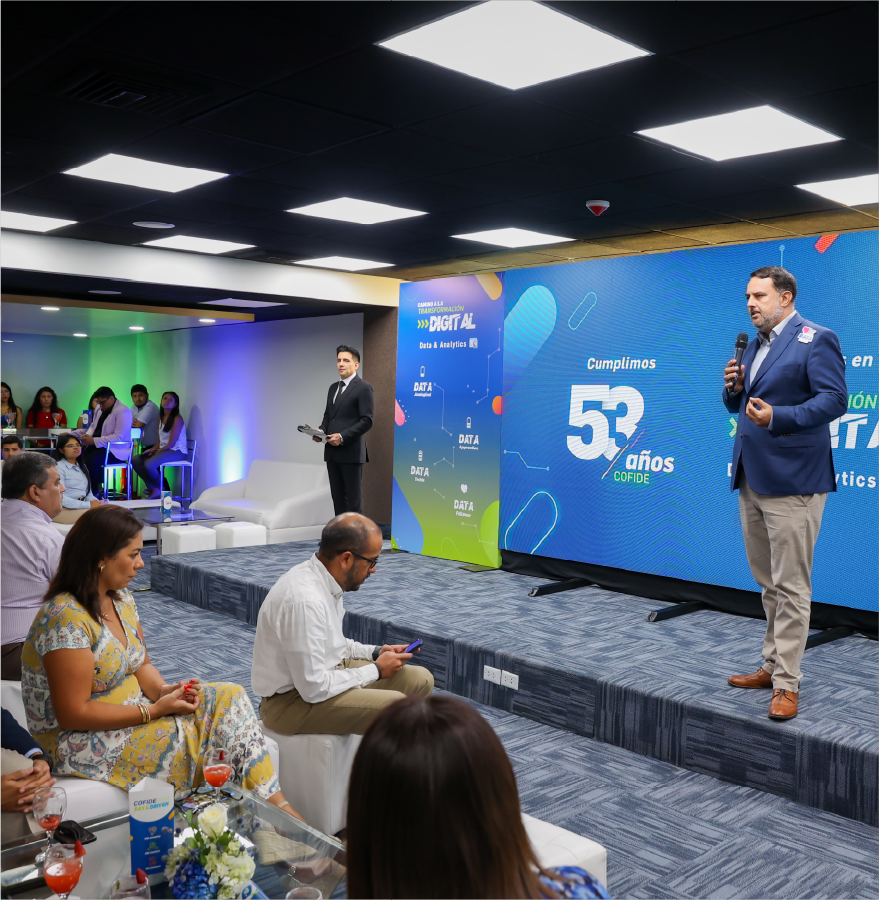 COFIDE celebró su 53 aniversario con un evento de integración que fomentó la conversación sobre su proceso de Transformación Digital. Se destacó la necesidad de adaptación y evolución en un mundo digitalizado, resaltando la importancia de la gestión de datos y la tecnología para el éxito empresarial